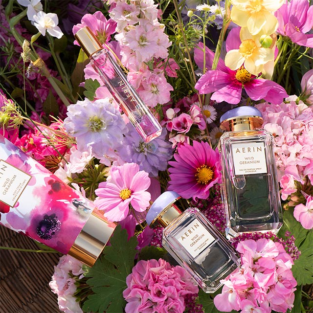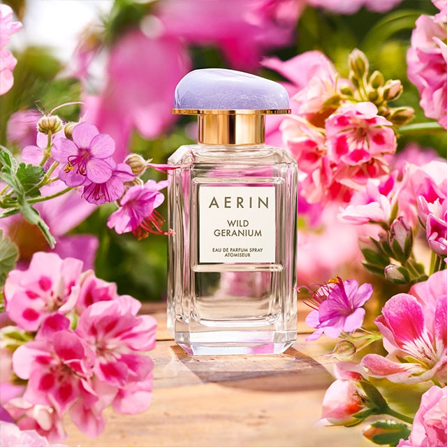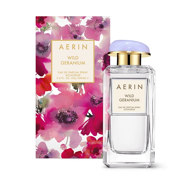 La Colección de Fragancias La Colección de Fragancias de AERIN es una colección de perfumes distintivos inspirados en los propios viajes, experiencias y recuerdos de Aerin. Wild Geranium es una fragancia floral exuberante con un encantador aroma a geranio inspirado en un campo brillante de flores silvestres en floración.