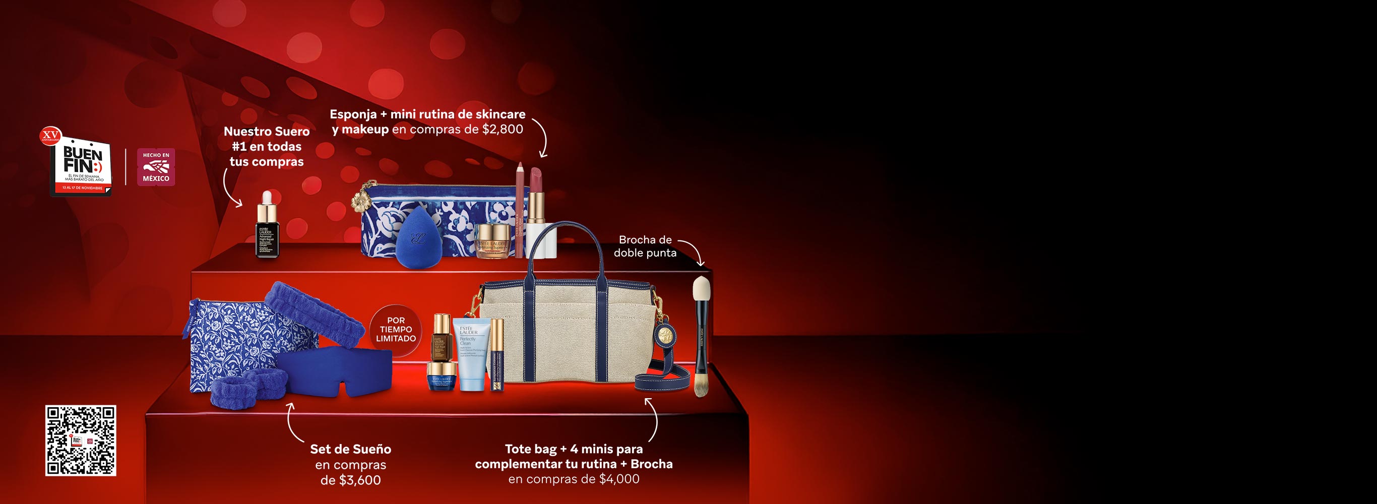 *Valido hasta el 17 de noviembre del 2025. Descuento en productos seleccionados y puede variar el porcentaje de descuento según el producto. Los obsequios pueden variar según la disponibilidad, revisa existencias en el carrito de compra al cumplir la mecánica de obtención. En caso de agotarse, se reemplazarán con otros de características similares en uso, resultado, calidad, cantidad, precio, etc. Imágenes de carácter ilustrativo. Promoción exclusiva online. Promoción exclusiva sólo en www.esteelauder.com.mx