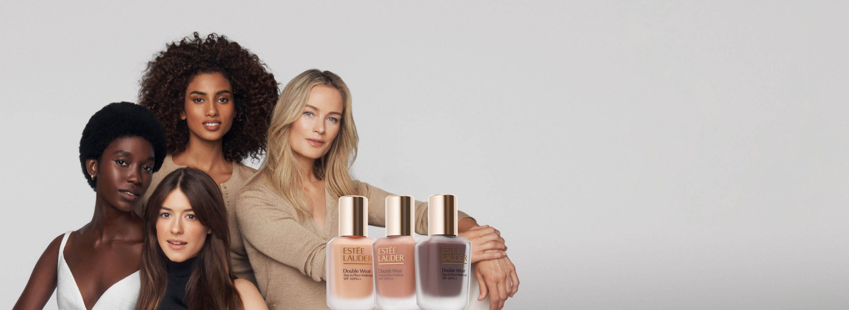 Desde la base de maquillaje hasta el corrector y el primer de maquillaje, compra nuestro producto más vendido Double Wear Foundation Makeup Collection para conseguir un aspecto impecable y natural que dure todo el día sin necesidad de retocar. La mejor base de maquillaje de Estée Lauder es Double Wear Stay-in-Place Makeup, sin aceites y que controla el brillo; es una base de maquillaje de cobertura total, mate y resistente al agua. Dura 24 horas. Si prefieres una base de maquillaje en polvo, Double Wear Matte Powder Foundation podría ser la tuya. Úsala como base de maquillaje o sobre ella. En todo el rostro o sólo para retoques. ¿No estás segura de cuál es la mejor base de maquillaje Double Wear para ti? Utiliza nuestro Foundation Finder para encontrar el tono, la fórmula y el acabado que mejor se adaptan a ti. Además, ¡pruébalo antes de comprarlo con nuestra herramienta iMatch™ Virtual Try-On Tool! ¿Buscas un corrector de ojeras? Disimula las ojeras y las imperfecciones con el corrector Double Wear Flawless Wear. Un aspecto impecable. Dura 24 horas. ¿Siguiente paso? Aumenta el dramatismo con el maquillaje de ojos de larga duración Double Wear. Aplícalo, difumínalo. Hazlo a lo grande. Es hora de usar Double Wear Foundation and Makeup de los expertos en maquillaje de larga duración de Estée Lauder. Póntelo una vez y no lo pienses dos veces.